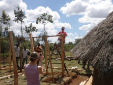 An Abigail Ministries team visited Shena’s Village in February 2011 to help build a kitchen for every house in the village. These are substantial corrugated iron structures which are vast improvements on the makeshift sacking that served as kitchens before these were built. The villagers were delighted with their new kitchens and soon set to work digging the earth to make hardcore floors.