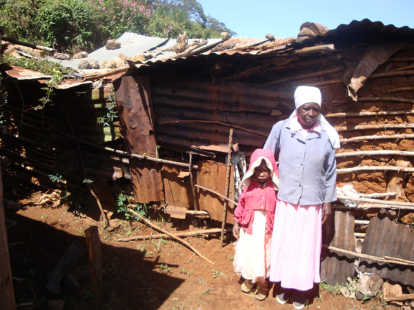 In the Uplands Community we visited families living in makeshift shacks perched precariously on the railway embankment. Families living there were in particular danger during the rainy season when the banks become mud slides and the trains hurtled past just yards above their unstable homes. In late 2009 we purchased a piece of land nearby and by July 2010 work began to build secure, stone houses for 12 of these families. It was a day of great rejoicing when they moved in to Shena’s Village in September of that year. Each family now OWNS a three roomed house and a shamba where they can grow their own vegetables. It has become a thriving community where everybody is living in harmony with each other. Piped water has been directed to a tap in the middle of the village and there is also a well, so the villagers never have to go searching for water and each block of three houses has its own toilet and shower block.
